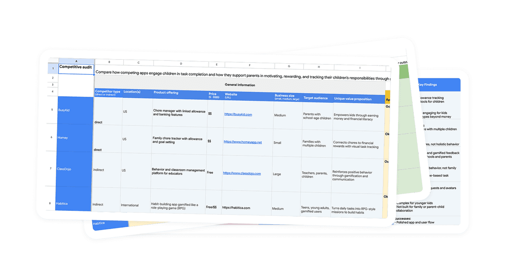With a tight timeline and no formal research team, I conducted a week-long, self-organized research sprint to better understand how families approach task management, motivation, and everyday routines.