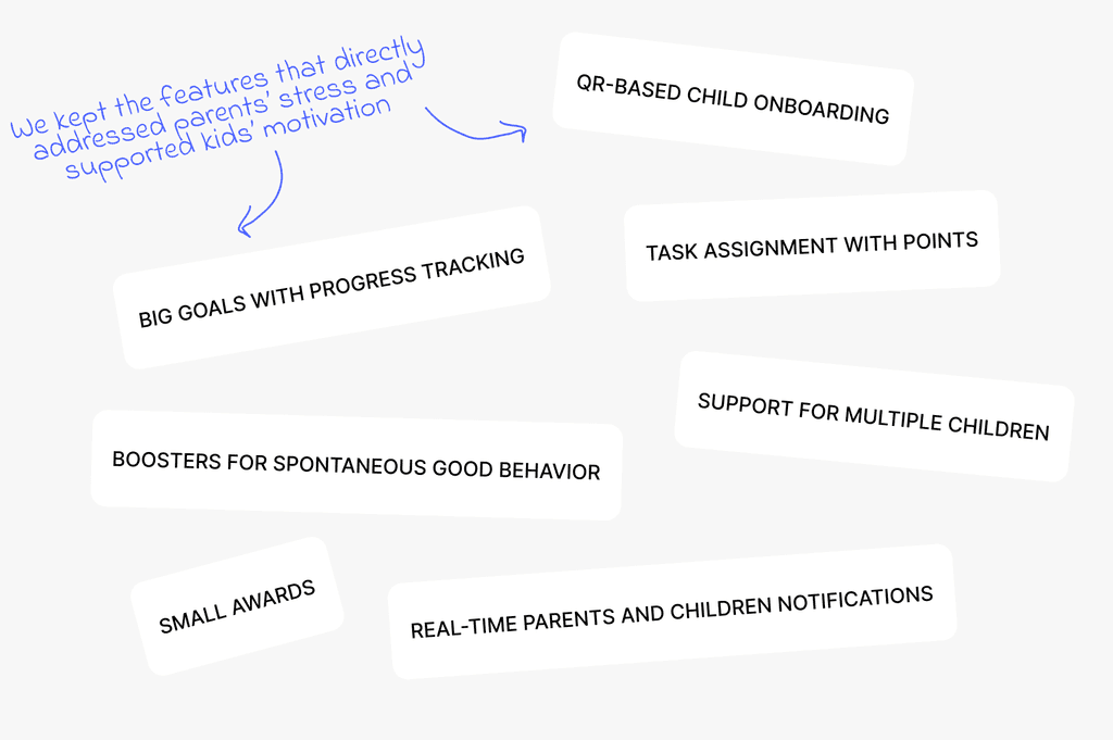Initially, we assumed that points alone would motivate kids and that parents only cared about task completion, but we learned that gamification, tailored rewards, and behavioral encouragement are essential for both engagement and effectiveness.